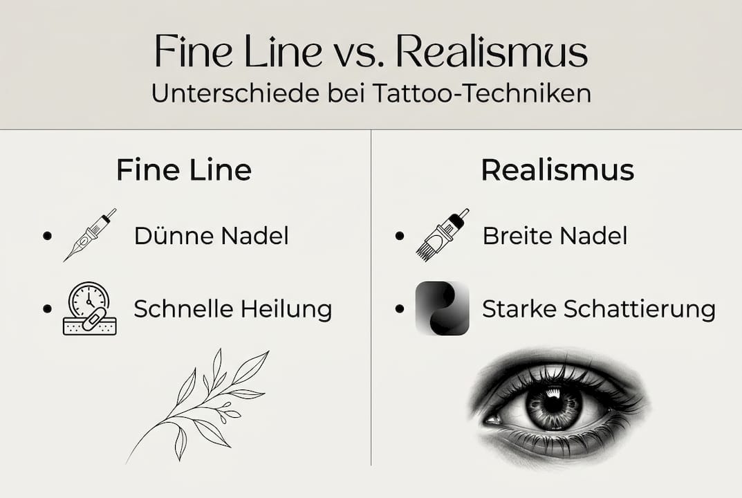 | Stilgerechte Umsetzung | Fine Line und Realismus verlangen unterschiedliche Ansätze und erfahrene Künstler für optimale Ergebnisse. |
