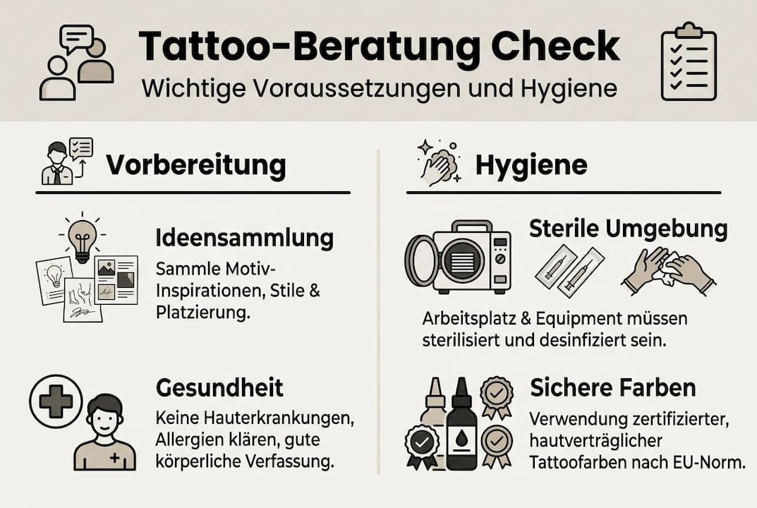Eine professionelle Tattoo-Beratung beginnt lange vor dem eigentlichen Gespräch. Sie ist kein kurzes Vorgespräch, sondern ein strukturierter Austausch, der Ihre Wünsche, Ihre Gesundheit und die technischen Möglichkeiten zusammenbringt. Wer gut vorbereitet erscheint, bekommt bessere Ergebnisse. Das gilt für das Motiv genauso wie für die Wahl des Stils, der Größe und der Position auf dem Körper.