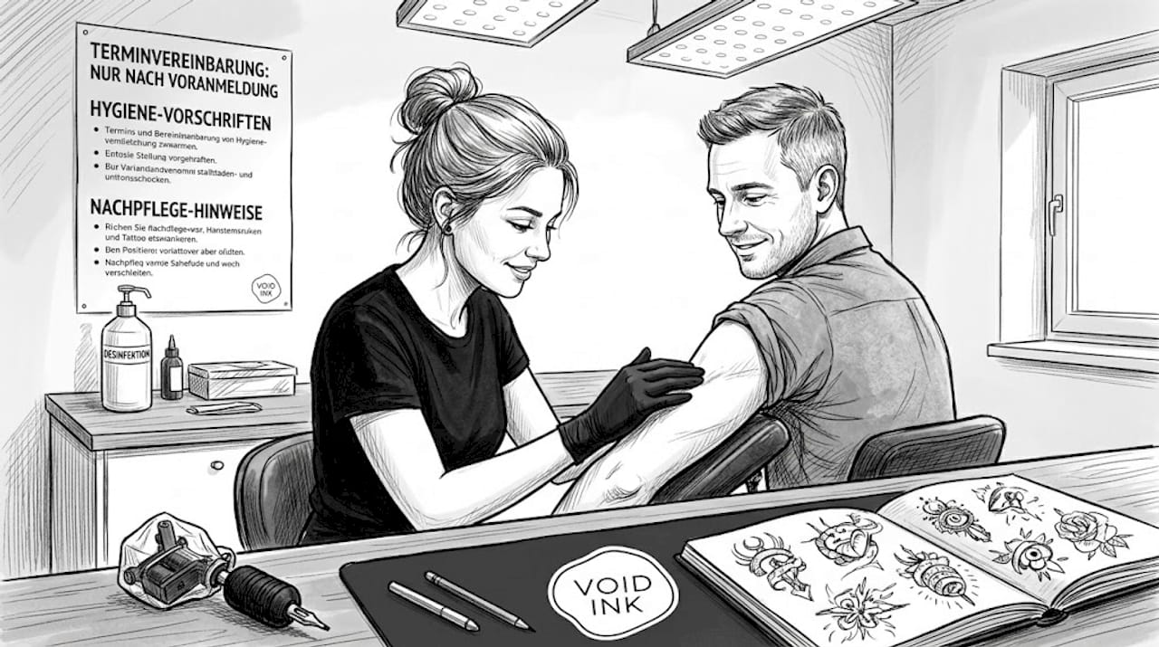 Erfahrene Tätowierer legen großen Wert auf eine klare Pflegeanleitung direkt nach der Sitzung. Wir bei Void Ink Berlin geben jedem Kunden konkrete Hinweise mit auf den Weg: welche Salbe zu verwenden ist, wie oft gereinigt werden soll und wann das Tattoo wieder Luft braucht. Das Ziel ist ein sauberes, farbintensives Ergebnis, das langfristig schön bleibt. Für individuelle Studio-Designs ist die Nachsorge genauso wichtig wie die Sitzung selbst.